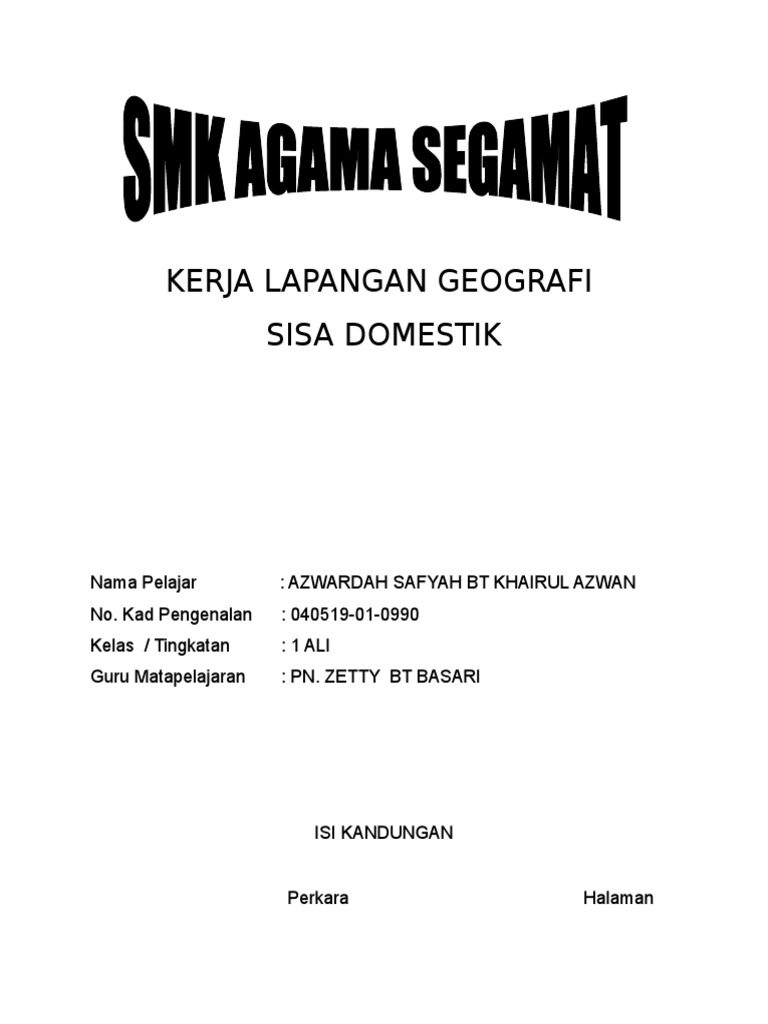 Contoh Kerja Kursus Geografi Tingkatan 1 Pembuangan Sisa Domestik